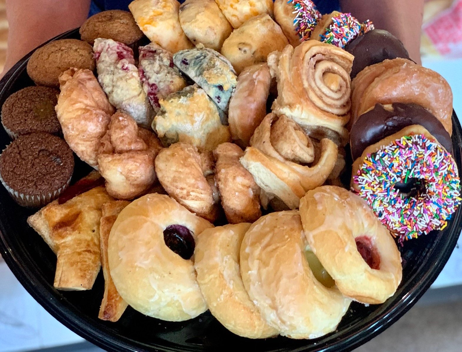 42 Pieces on an 16 inch platter with a lid.- 8 Assorted Scones (Raspberry, Blueberry, Cheese, Raisin)