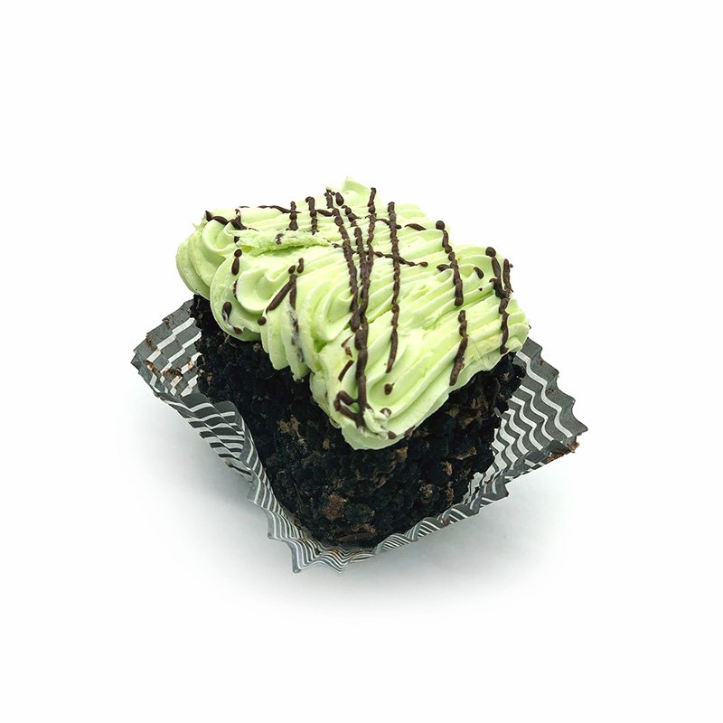 $2.75A great option for entertaining, this cake pieces is made of chocolate pound cake, filled with mint diplomat and topped with mint buttercream and cookie crumbles.