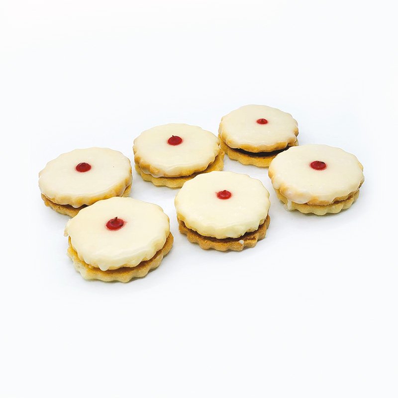 $1.85 – $21.00Price range: $1.85 through $21.00Enjoy two of our classic buttery shortbread sandwiched with raspberry preserve and iced with a white sugar glaze.